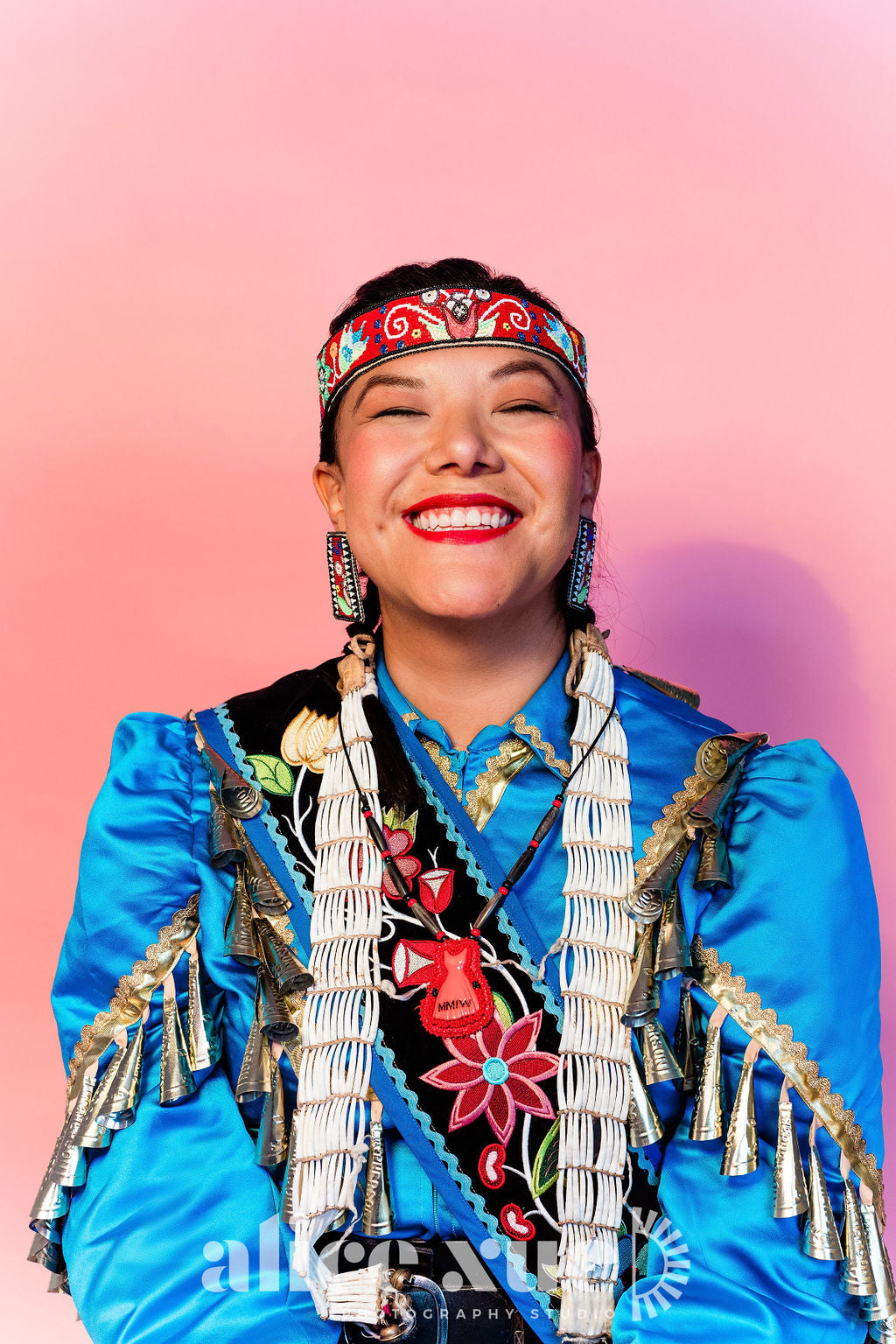 As a daughter of a 60’s Scoop survivor, our shared trauma threatened to permanently cut us off from participating in our culture. Making, wearing and dancing in Regalia has been a powerful part of my healing journey. Reconnecting to my culture through sewing and dance has brought me and my family back to community to the life I was always meant to live.